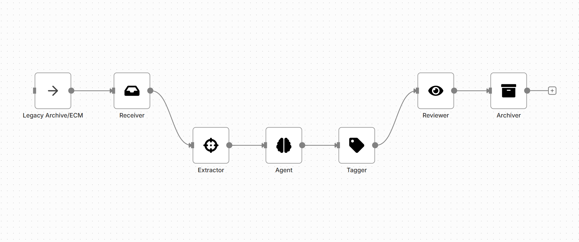 | Receiver | Connects to and pulls the document index and metadata from the legacy/target archive. |