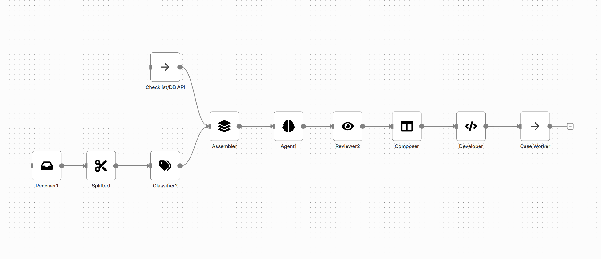 | Assembler | Dynamically groups related documents into a cohesive, checklist-driven case file. |